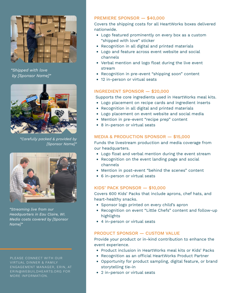 - Explore Sponsorship Opportunities – Corporate and community partners are invited to sponsor the event, gaining national visibility and engagement with more than 1,500 attendees and inclusion in 550+ meal kits shipped nationwide.